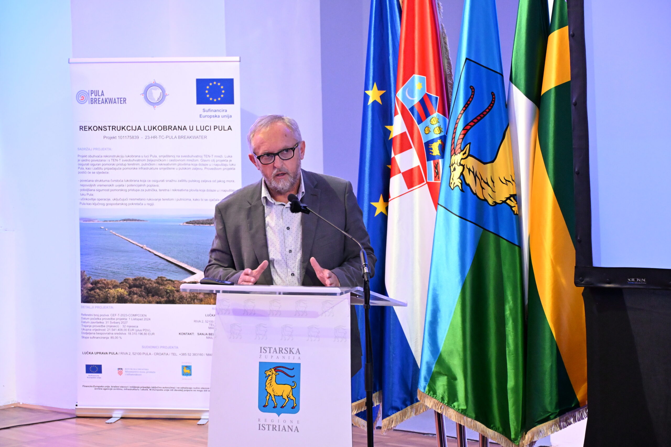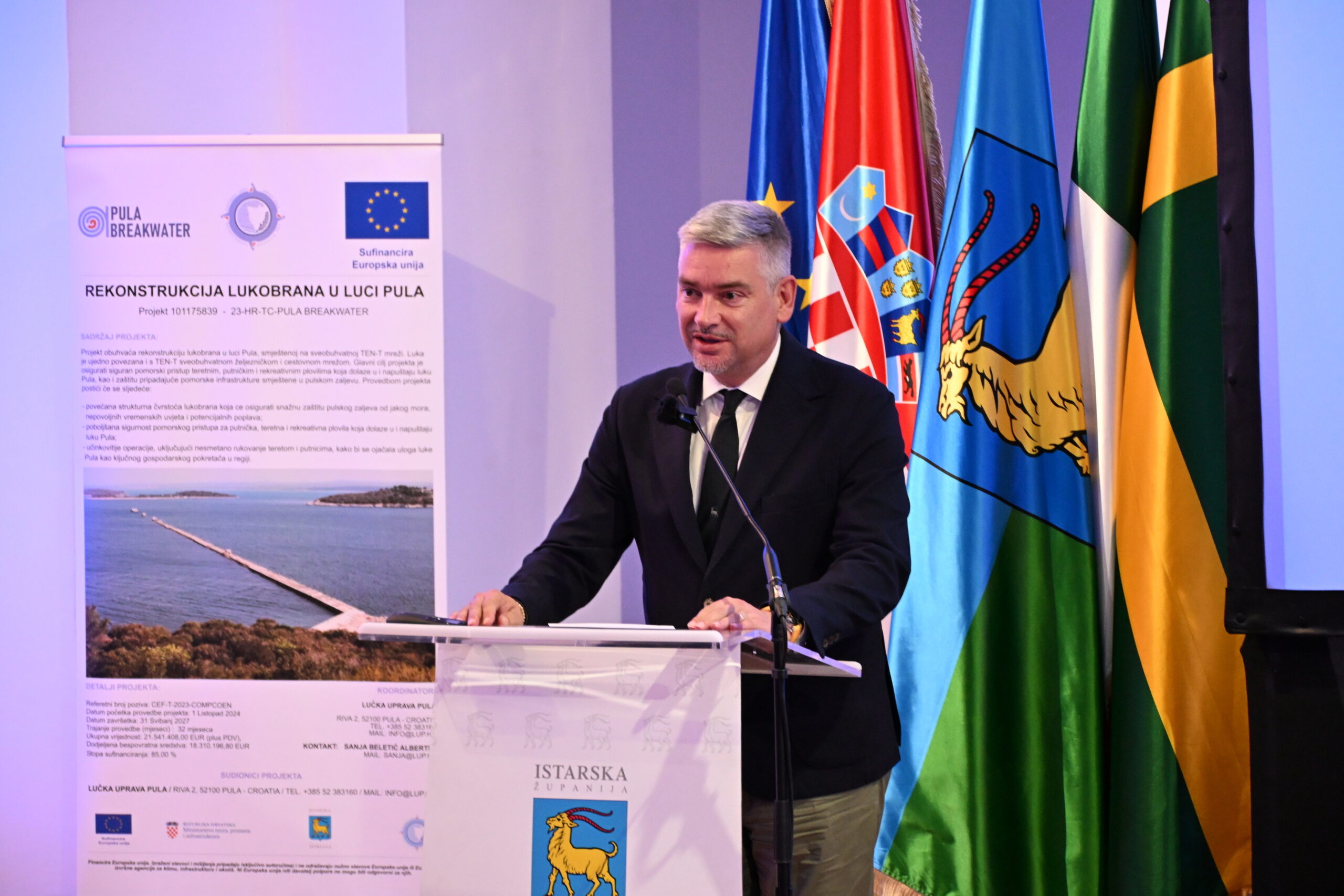 O značaju projekta govorili su župan Istarske županije Boris Miletić, gradonačelnik Pule Peđa Grbin, voditelj Službe za strateško planiranje i razvoj projekata pri Upravi za EU fondove i strateško planiranje Ministarstva mora, prometa i infrastrukture Marko Boban, ravnatelj Županijske lučke uprave Pula Dalibor Brnos te član Uprave POMGRAD INŽENJERING d.o.o. Nikša Musulin.