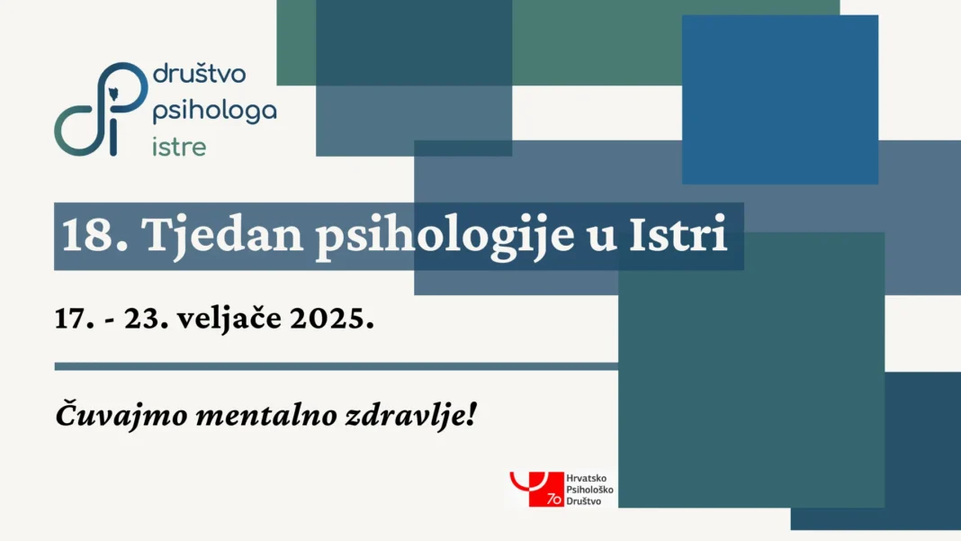 U organizaciji Hrvatskog psihološkog društva 18. Tjedan psihologije u Hrvatskoj koji će se održati od 17. do 23. veljače 2025. godine različitim događajima i aktivnostima psihologa i psihologinja diljem Hrvatske.