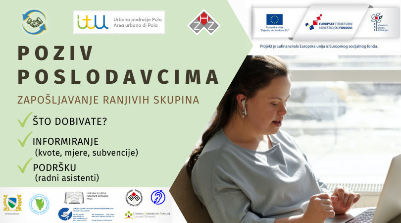 Trenutno je otvoren poziv poslodavcima sa područja južne Istre koji su zainteresirani saznati više o mogućnostima zapošljavanja osoba s invaliditetom da se jave kako bi ih upoznali sa: