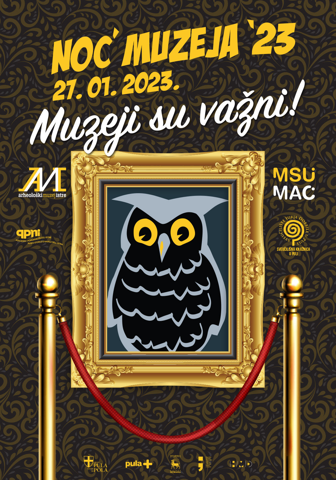 U petak, 27.siječnja održava se već tradicionalna, 18. po redu Noć muzeja. Ovogodišnji je moto manifestacije “Muzeji su važni!”. U Puli su se u Noć muzeja uključili Arheološki muzej Istre, Muzej suvremene umjetnosti Istre, Povijesni i pomorski muzej Istre, te Sveučilišna knjižnica u Puli.