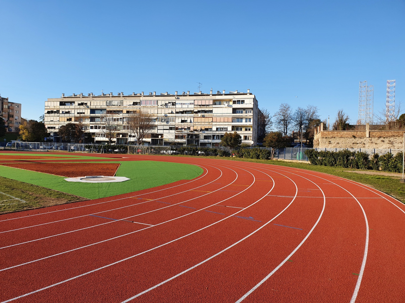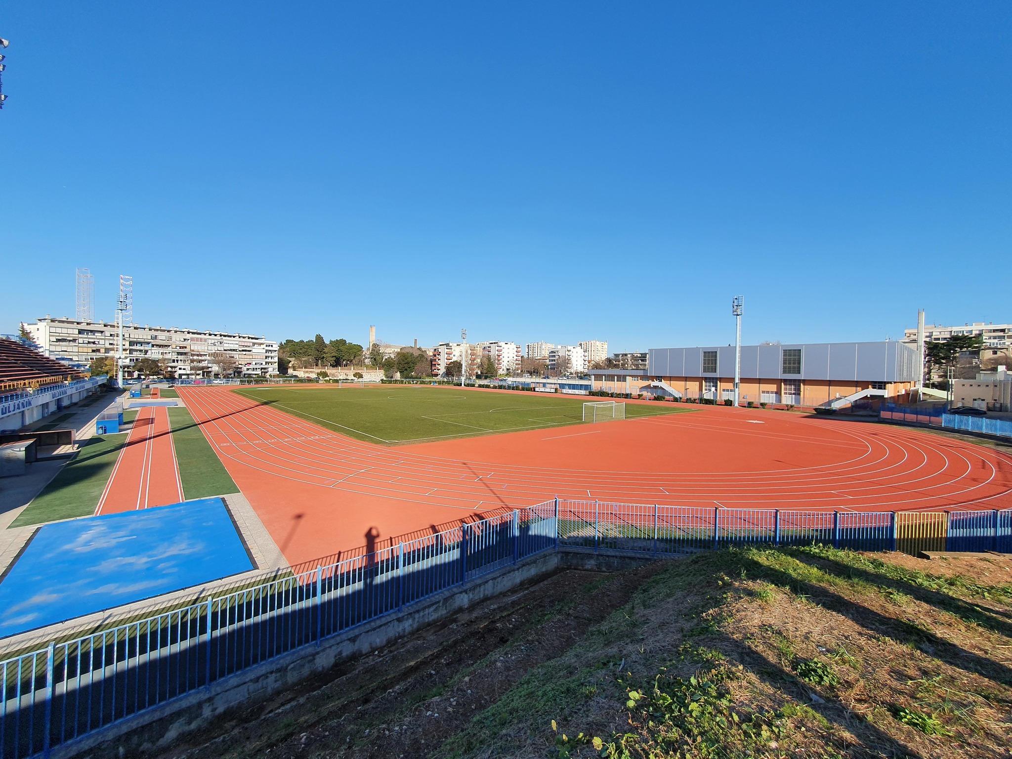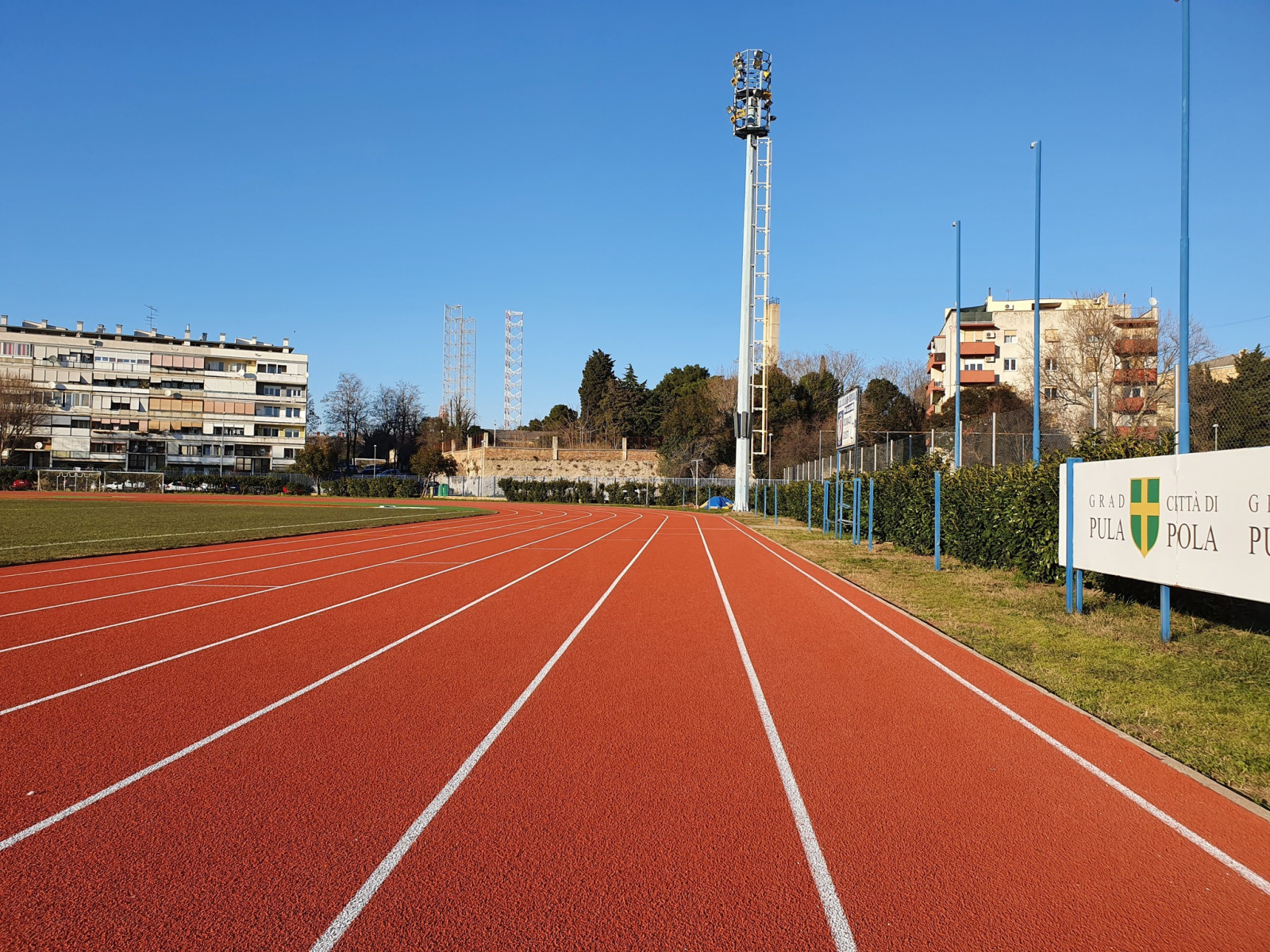Danas je izvršena primopredaja staze i službeno je u funkciji, čekamo još certificiranje WA (Svjetske atletske federacije) i nadamo se dobiti Class 1 ili Class 2, da bude jedna od najboljih staza u Hrvatskoj, iako je meni već najbolja. Materijal je vrlo kvalitetni Polytan Rekortan M, pogodan za treninge a ujedno i dovoljno tvrd i “brz” za postizanje vrhunskih rezultata. Zbog nedostatka opreme trenutno se ne može koristiti skok u vis, bacanje diska i skok s motkom, ali i to će se uskoro kompletirati, nastavio je Peršić. Poručivši kako je stazu je u potpunosti financirao Grad Pula.