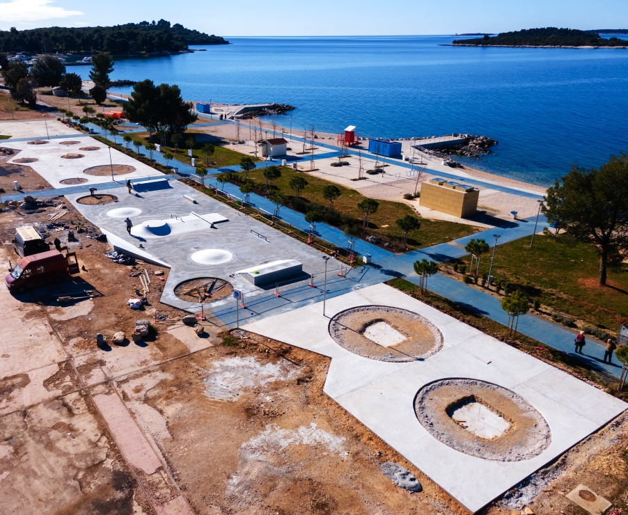 Ovih dana privode se kraju radovi i na uređenju plaže Hidrobaza koja će dobiti dodatne sadržaje poput skate parka, površina za bicikliranje i stijene za penjanje. Ovogodišnja ulaganja u iznosu 2,1 milijun kuna s PDV-om Grad Pula financira samostalno, bez dodatnih sredstava Ministarstva turizma i sporta.