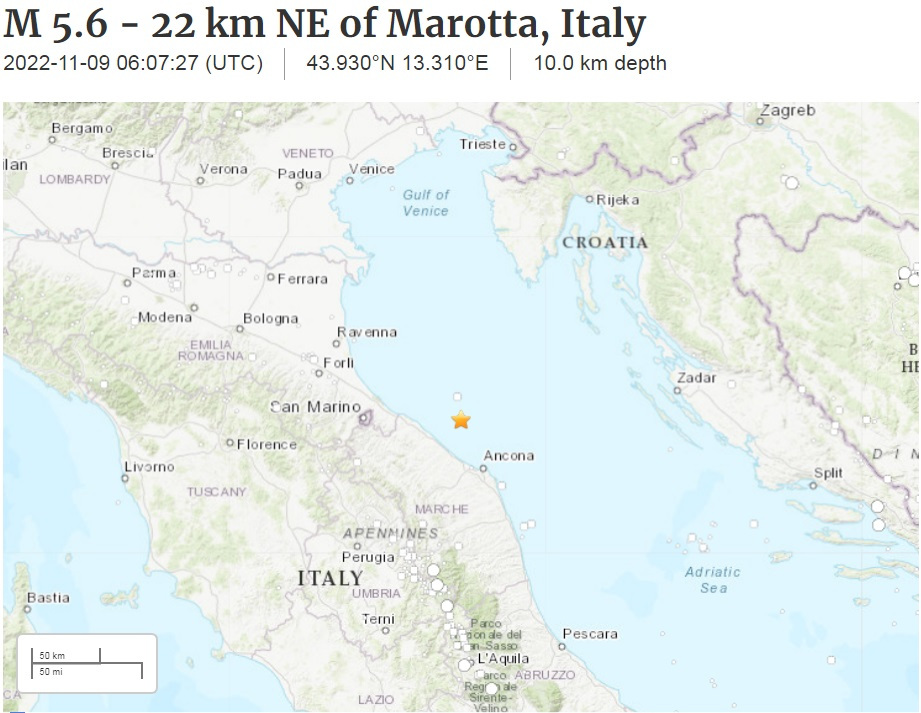 Jutros u 7:07 sati nas širem području južne Istre osjetio se potres koji se dogodio na talijanskoj strani sjeverno od Ancone u moru na dubini od 10 km. Za sada nema nikakvih vijesti o nastalim štetama.
