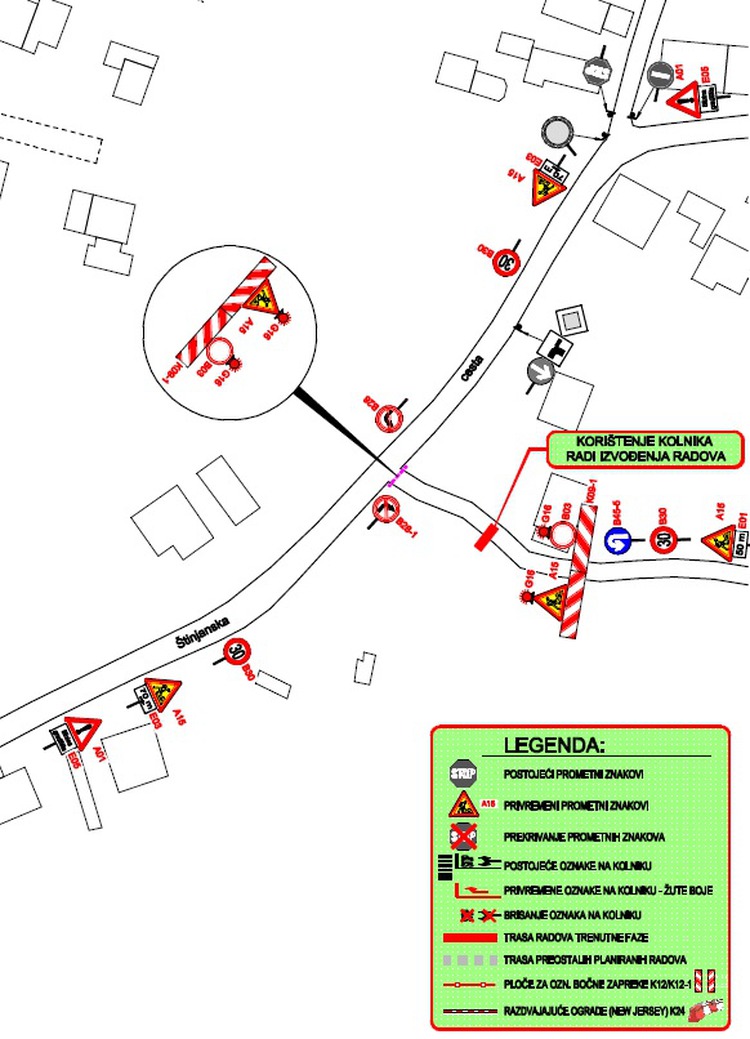 Za potrebe izgradnje priključka na javni sustav sanitarne odvodnje, trgovačkom društvu Pragrande d.o.o. za obavljanje djelatnosti javne odvodnje, odobreno je izvođenje građevinskih radova unutar građevine nerazvrstane ceste uz prethodno uvođenje privremene regulacije prometa na slijepom odvojku Štinjanske ceste.