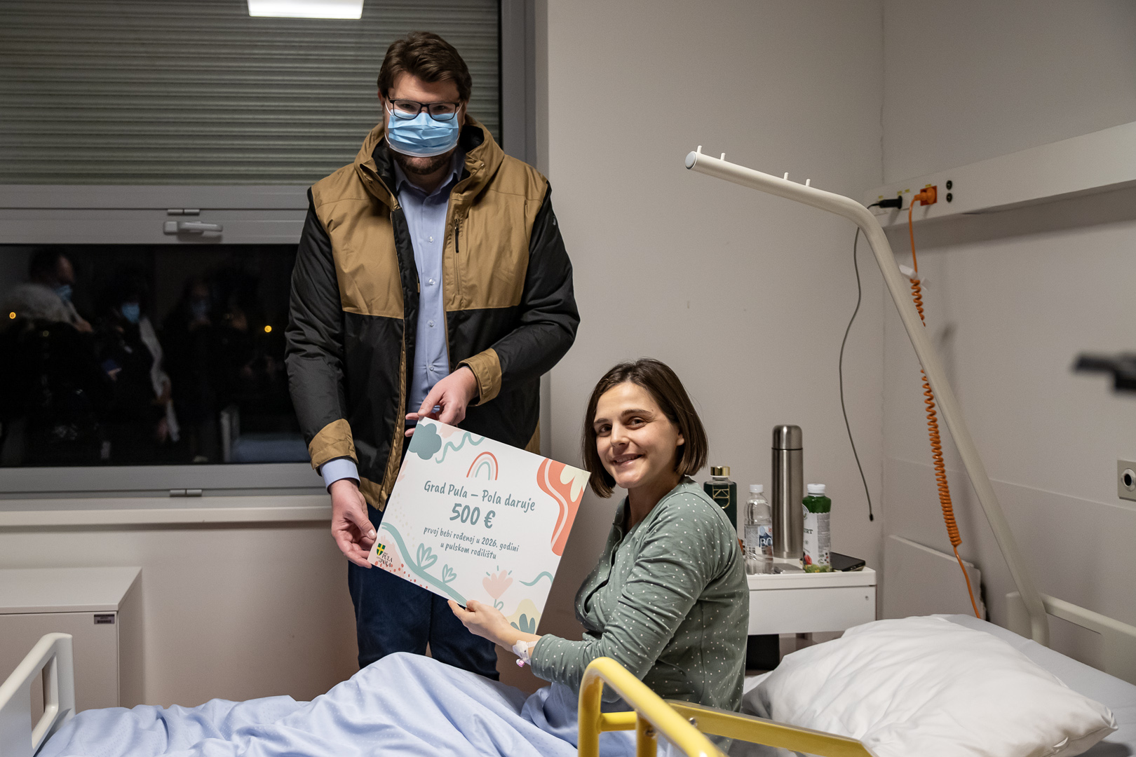 Prvu bebu u 2026. godini obišao je gradonačelnik Peđa Grbin, koji je roditeljima osobno čestitao na prinovi. Tom je prilikom djevojčici darovao simbolični poklon-bon u vrijednosti od 500 eura, paket pelena, dok je majci uručeno cvijeće.
