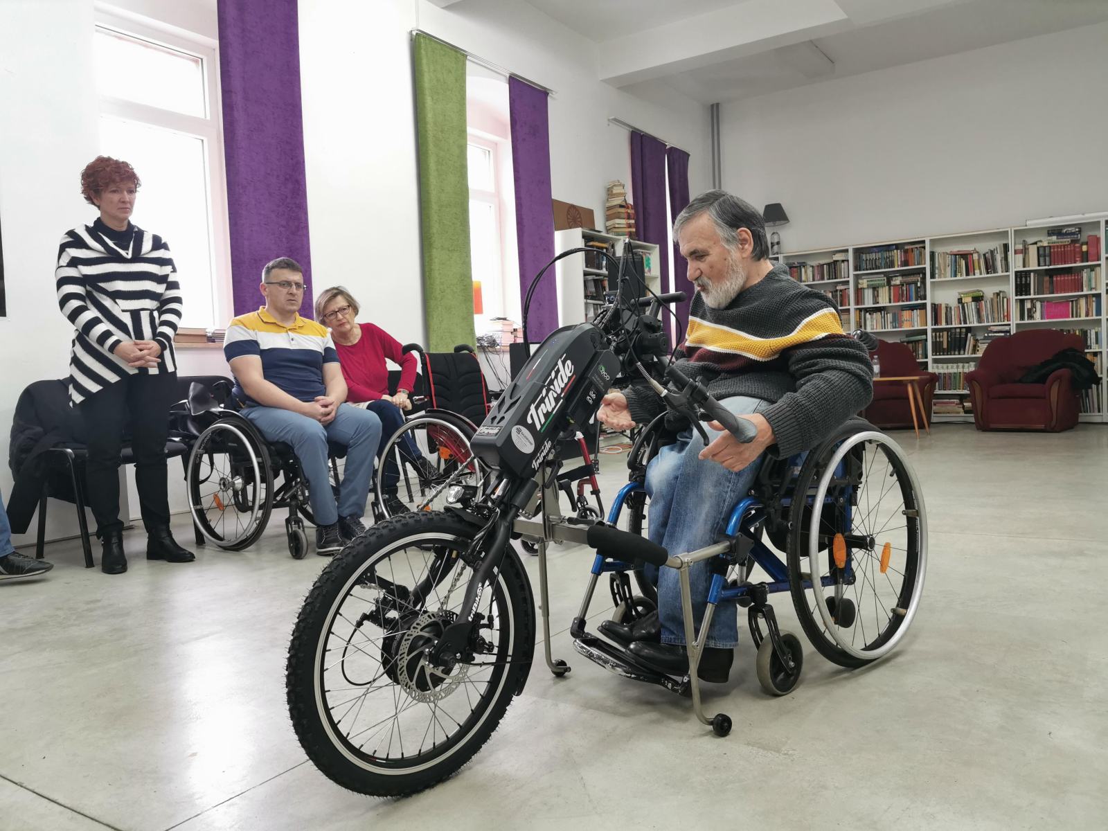 U Društvenom centru Rojc danas je predan na korištenje i trajno vlasnoštvo tribike-a. Radi se o dodataku koji se montira na invalidska kolica na električni pogon.