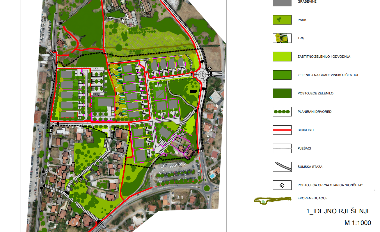 Prema prijedlogu plana, područje je namijenjeno pretežno stanovanju, uz jasno definirane uvjete gradnje, ograničenja visine objekata i oblikovanje prometne i komunalne infrastrukture. Predviđena je niska stambena izgradnja, pješačke i biciklističke veze te sustavi za upravljanje oborinskim vodama, a naglašava se i očuvanje krajobraznih i kulturnih vrijednosti prostora.