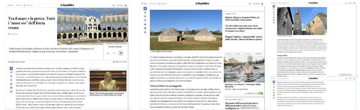 Objava u La Repubblici, jednom od najčitanijih i najuglednijih talijanskih dnevnih listova s više od 1,5 milijuna čitatelja dnevno, predstavlja iznimno vrijedan doprinos promociji Istre na talijanskom tržištu, posebno u segmentu kulturnog, eno-gastro i slow travel turizma.