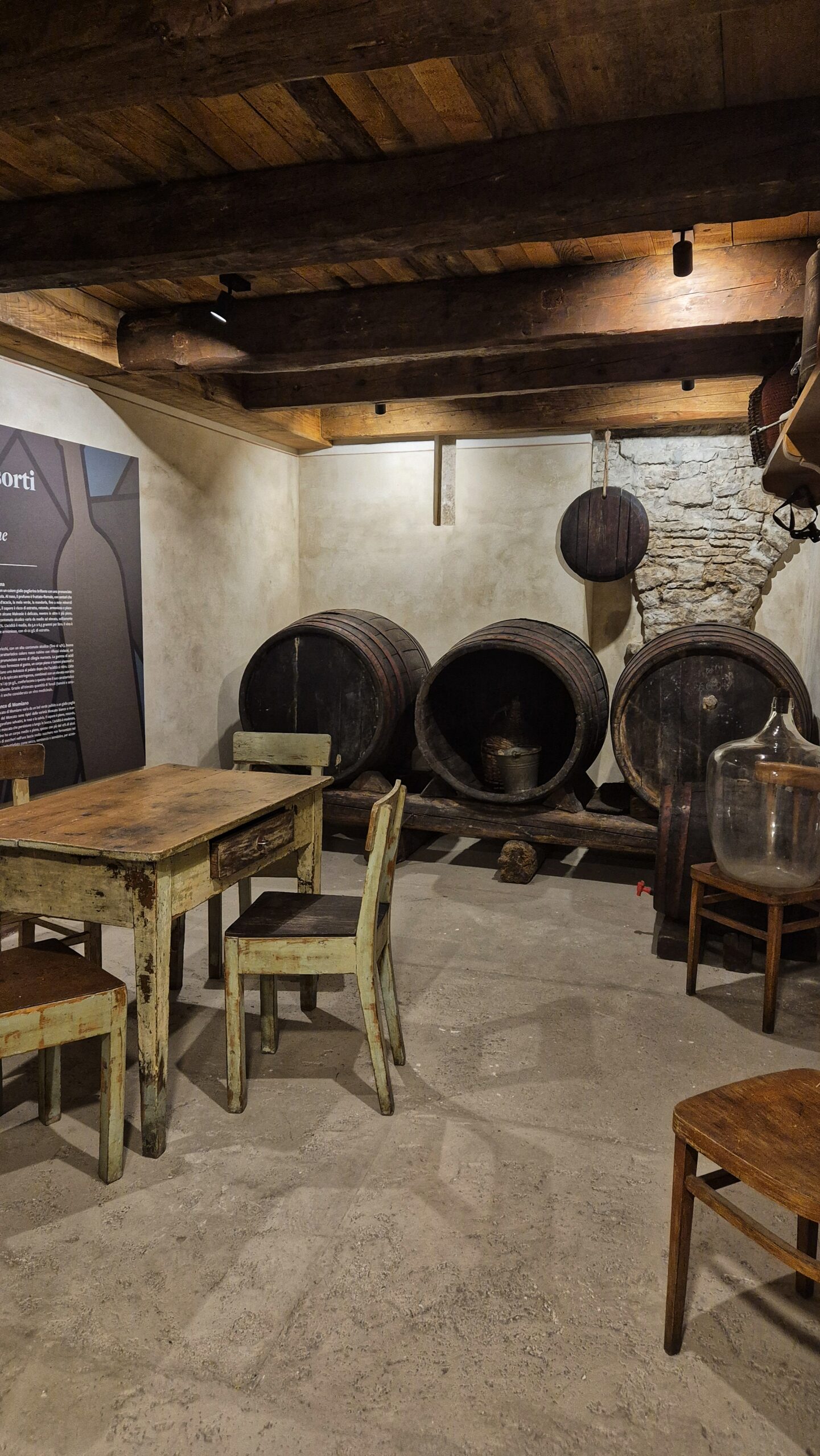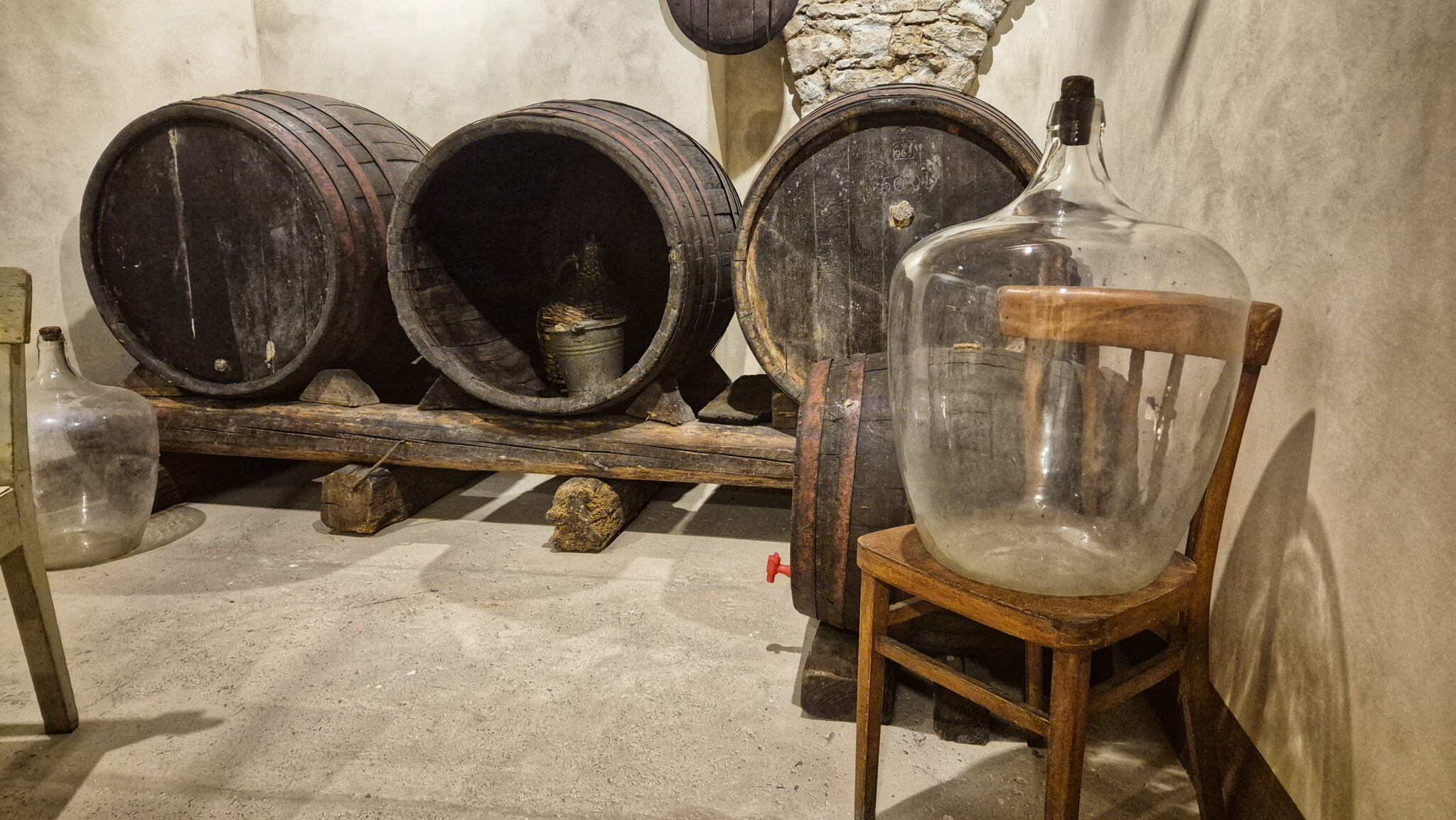 Prvi dojam stiže već na pragu, ali ono pravo otkriće dočekalo me čim sam zakoračila u prizemlje Muzeja vina Istre u samom srcu Pule. Teška vrata nekadašnje banke na adresi Sergijevaca 11 vode u prostor koji podsjeća na staru istarsku konobu, odnosno onaj skroviti, mirisni podrum u kojem je vino oduvijek bilo više od pića. Dok mi se pogled zaustavlja na drvenim gredama i starim bačvama, pomislim kako su sličnu konobu imali i moj dide i nono. Iako su bili dva različita svijeta – jedan u Burićima kraj Kanfanara, drugi u Štokovcima kraj Savičente, podrum, bačve i bukalete su nešto što ih je spajalo. I taj miris starih drvenih bačava, vinske mušce kako lete na dunje, stari tapuni, preša, mlin…